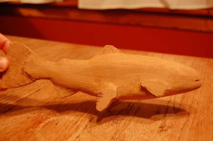 Carved wooden trout